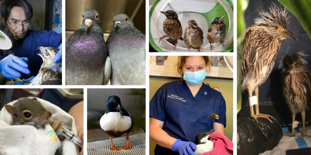 For migratory birds that have collided with windows, hawks that have ingested rodenticide, gulls entangled in fishing line, pigeons suffering from lead poisoning, fledglings attacked by outdoor cats and thousands of baby songbirds displaced from their nests, WBF is their only emergency room. Squirrels, opossums and turtles too!